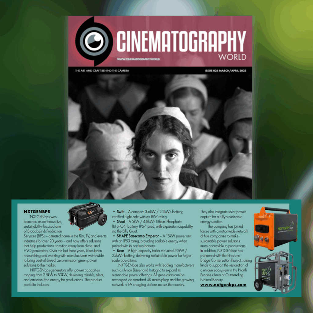 We featured in the latest issue of Cinematography World, as part of their Sustainable Shooting spotlight. Read more Pg.64 →