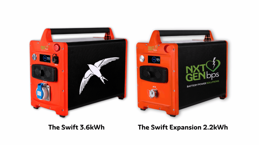 The NXTGENbps Swift provides 3.6kW of continuous power with a 2.2kWh capacity. Expandable up to 8.8kWh with daisy-chaining.